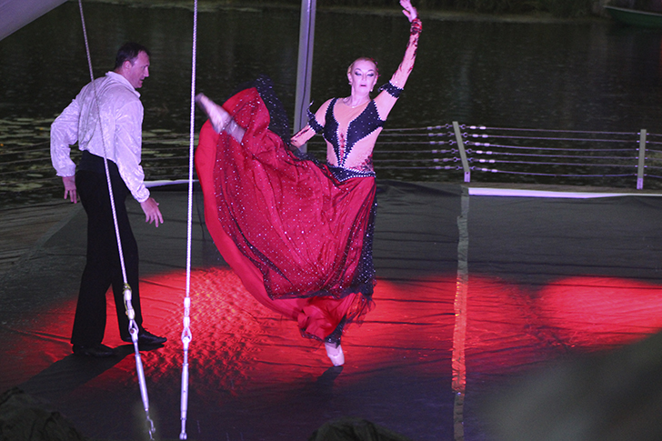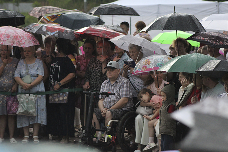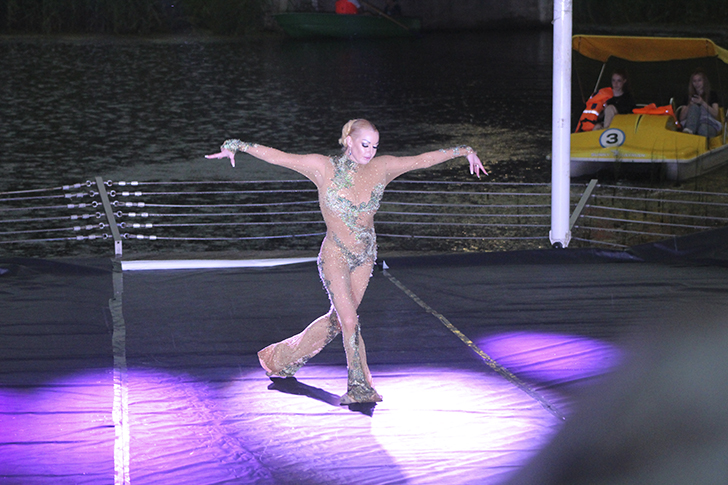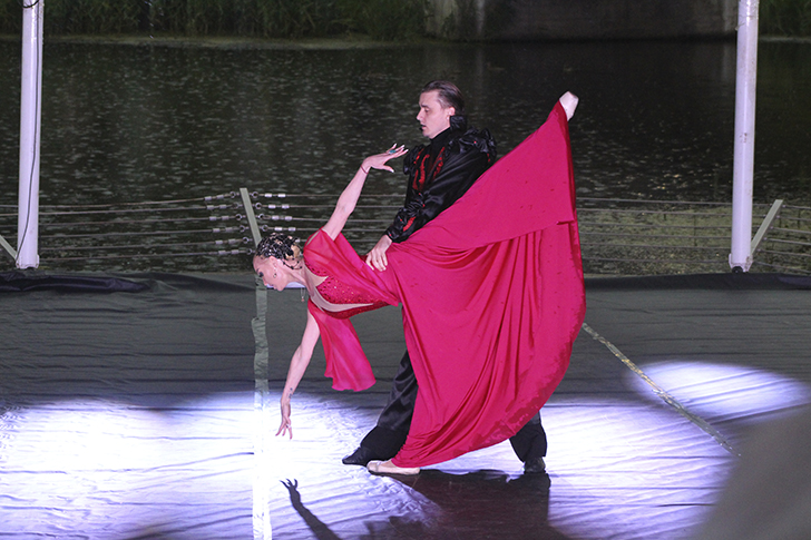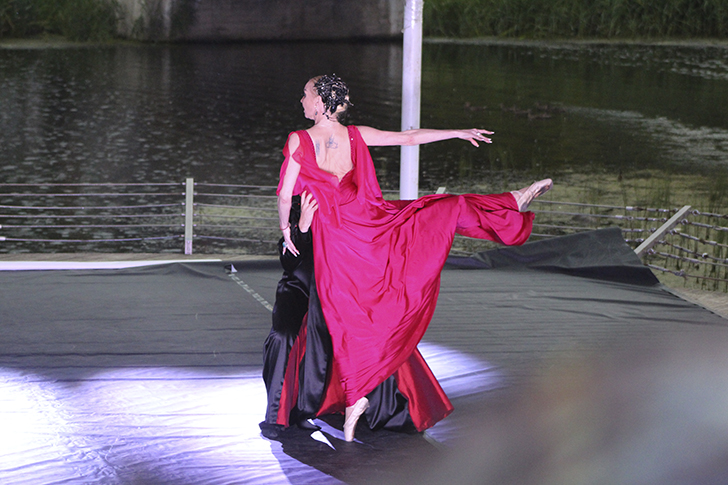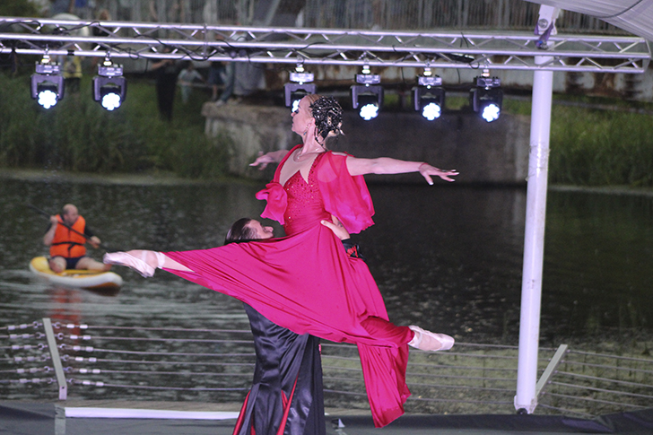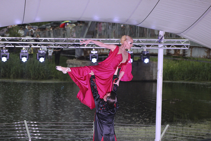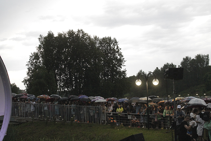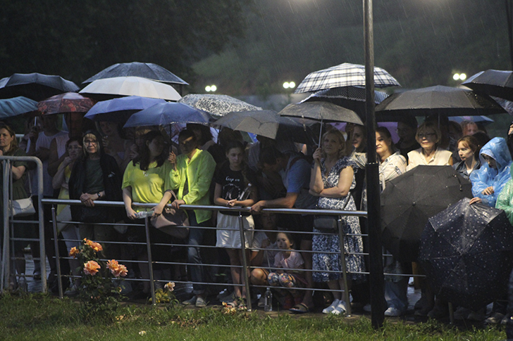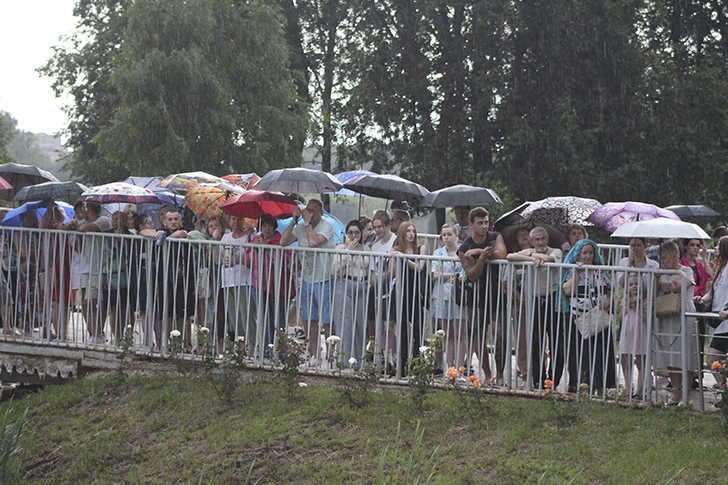 Несмотря на проливной дождь и грозу, Сестрорецкий парк собрал аншлаг на долгожданном танцевальном шоу Анастасии Волочковой. Поклонники артистки, некоторые из которых заняли места за 2–3 часа до начала, заполнили амфитеатр у Водной сцены, превратив непогоду в часть уникального театрального действа.