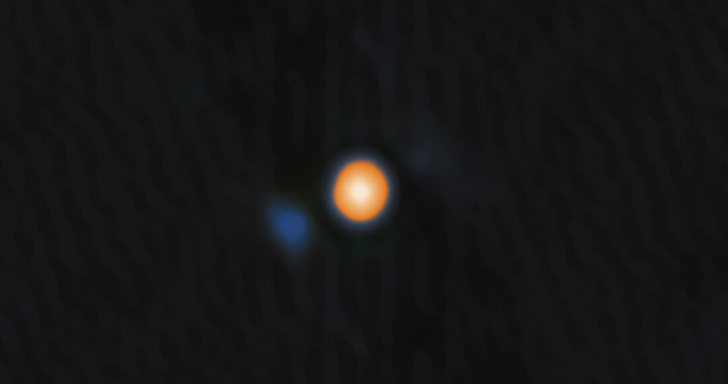 Теперь астрономы впервые напрямую обнаружили этого спутника с помощью инструмента, установленного на телескопе «Gemini North». Как выяснилось, он примерно в 6 раз слабее по яркости и имеет массу около 1,5 солнечной. По предположениям ученых, это горячая молодая звезда, которая еще не начала термоядерное горение. Особенно удивительным оказалось ее расположение – всего в четырех астрономических единицах от поверхности красного сверхгиганта, то есть внутри его внешней расширенной атмосферы.