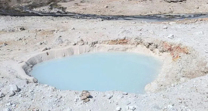 В апреле геологи Йеллоустонского национального парка во время первого в этом году посещения бассейна Норрис-Гейзер обнаружили необычное явление. Во время плановой проверки температурных датчиков они заметили, что на северо-западной оконечности участка, известного как «Остров Дерева», появилась большая дыра диаметром около 4 метров, заполненная молочно-голубой водой.
