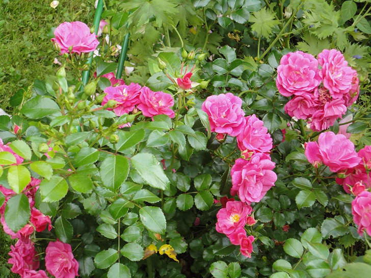 Огромное количество цветков покрывает весь куст снизу доверху и красиво смотрится на фоне здоровой, глянцевой листвы. Сейчас эта роза на пике популярности — и неудивительно, поскольку славится своей отличной зимостойкостью и здоровьем.