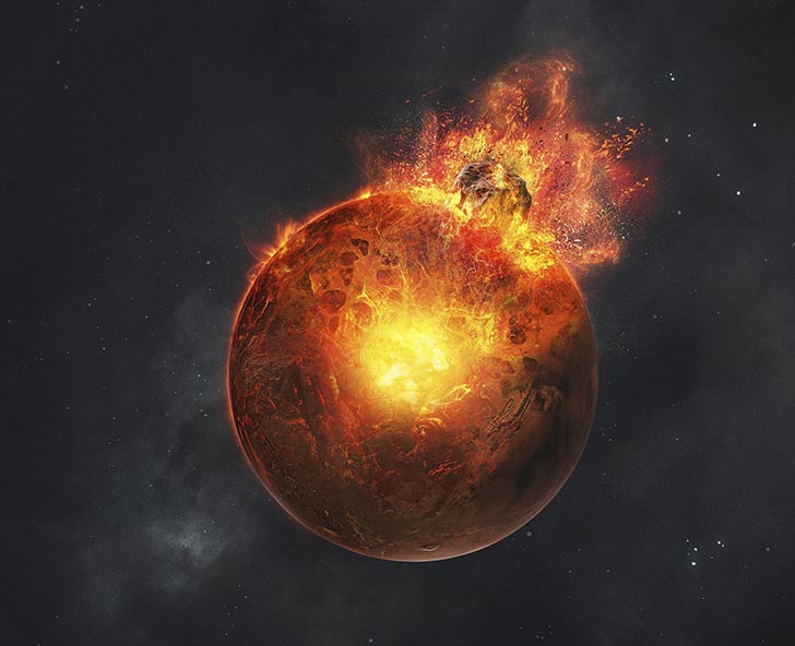 Марс формировался примерно 4,5 миллиарда лет назад из космической пыли и камней. После того как планета приобрела окончательные очертания, ее неоднократно поражали гигантские объекты, подобные тем, которые, вероятно, создали Луну.
