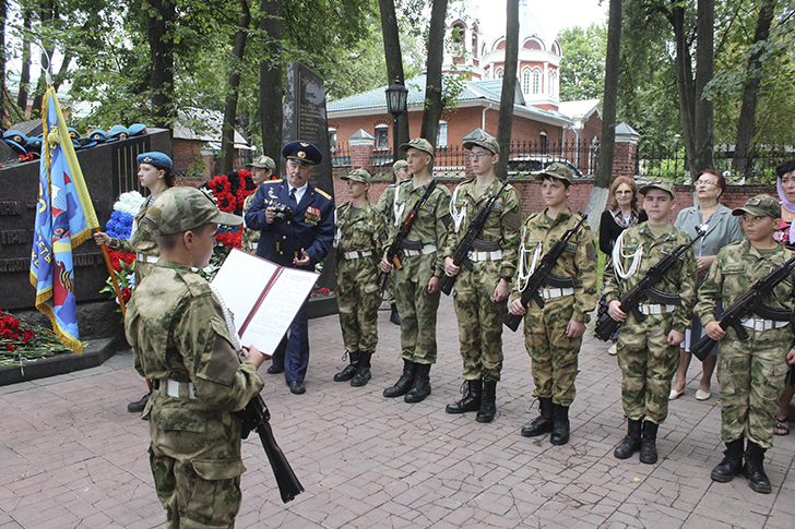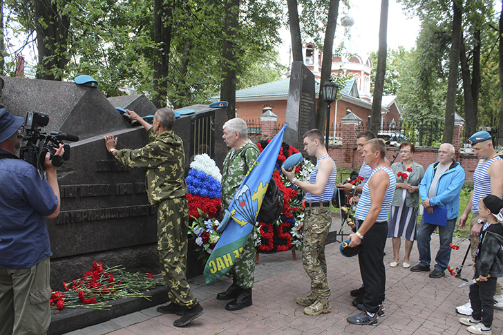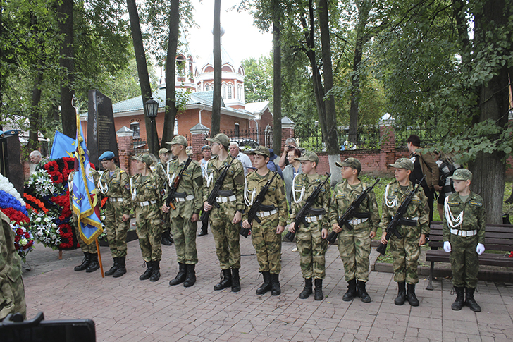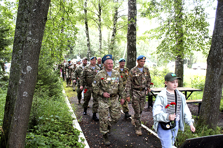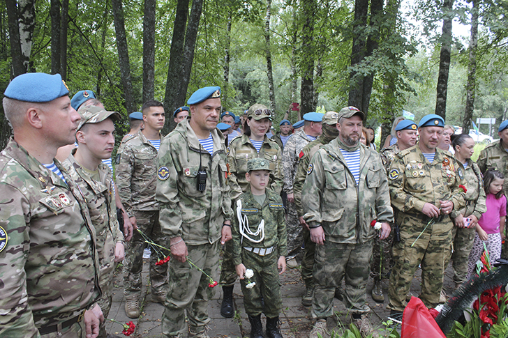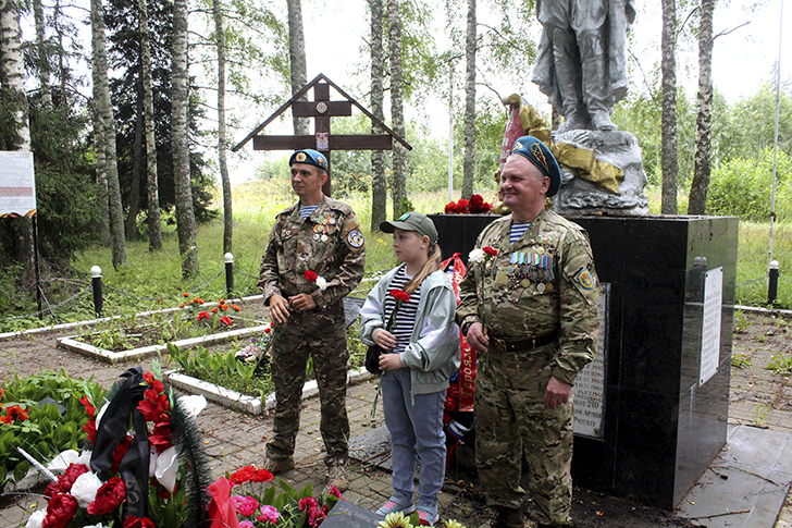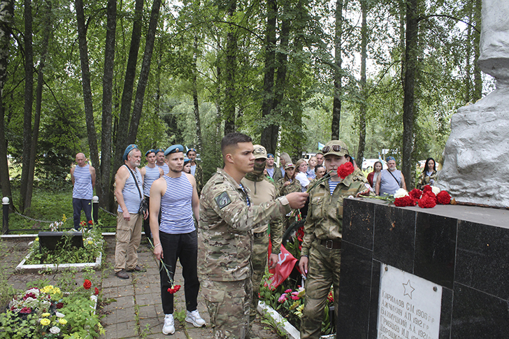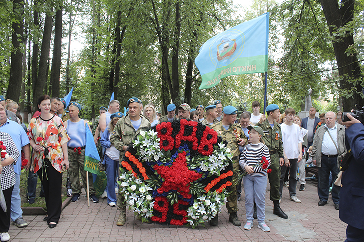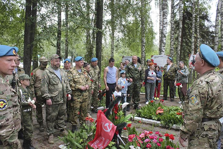 Далее десантники и их семьи возложили цветы на братские захоронения города Высоковск и рядом с поселением Селенское, а так же почтили их память минутой молчания.
