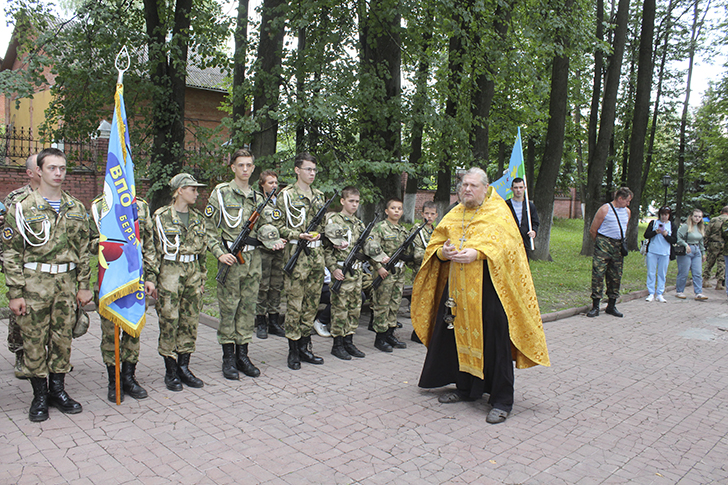 Далее настоятель храма Георгия Победоносца в Подтеребове, военный священник, протоиерей Савва Щербина, отслужил службу о небесном покровителе святом Илье пророке и всех присутствующих поздравил с днём ВДВ.