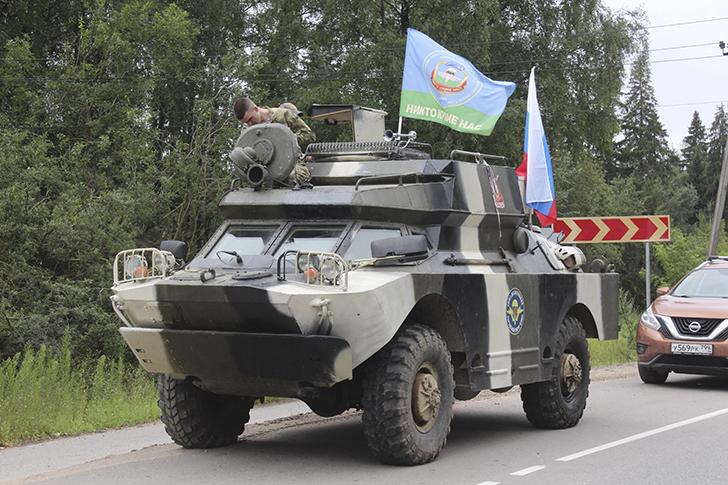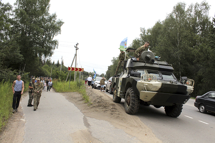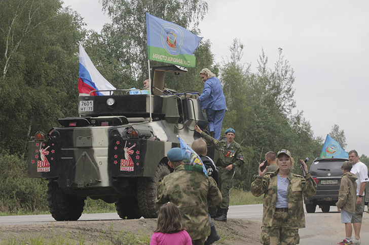 В рамках празднования Дня ВДВ был организован автопробег до города Высоковск. И над Лавровской дорогой колонну автомашин с флагами, торжественно сопроводил боевой вертолет, показав солидарность боевых частей.
