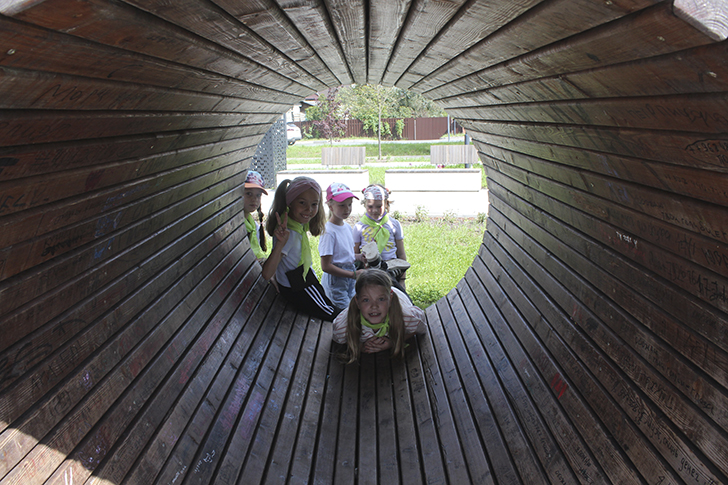 Вот там и поиграли в «Ручеёк» (фольклорный хоровод) и в «Лесного медведя» (подобие салочек). Детвора была довольна и счастлива. Хотя в заключении было тяжело расставаться, хотелось играть ещё больше.