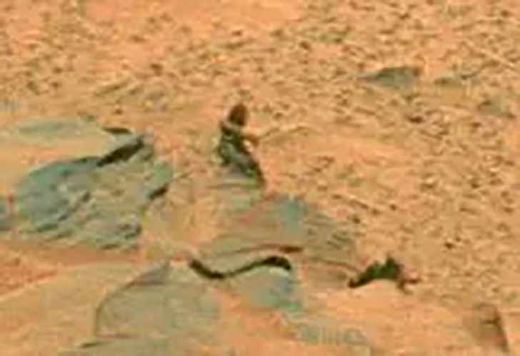 Забавным примером стал снимок, который в шутку назвали «снежным человеком на Марсе». На первый взгляд, крошечный камень действительно отдаленно напоминал фигуру из знаменитого фильма Паттерсона-Гимлина, где якобы запечатлен бигфут. Однако на деле это был всего лишь фрагмент панорамного снимка, сделанного марсоходом Spirit в 2007 году.