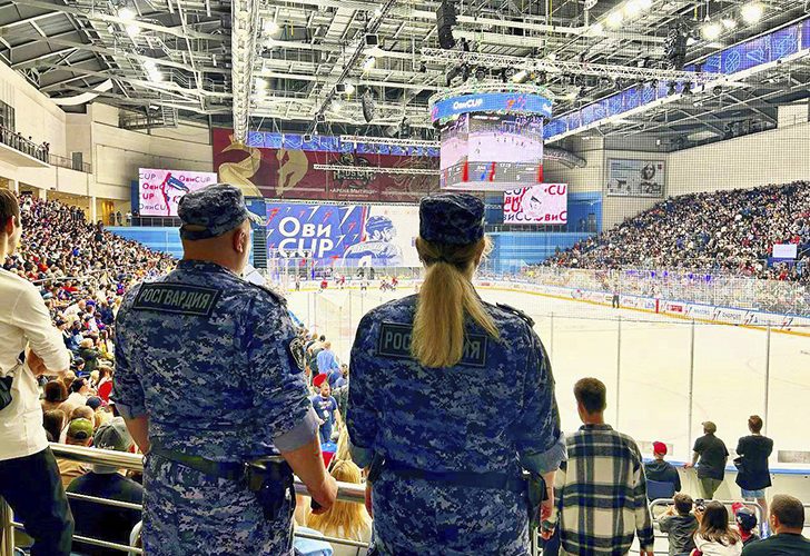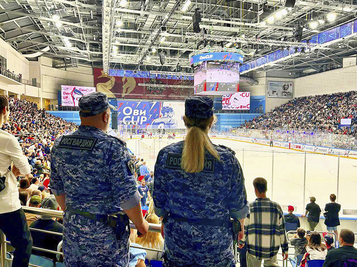 Экипажи вневедомственной охраны подмосковного главка Росгвардии несли службу в местах проведения мероприятий, а также патрулировали территории, прилегающие к ледовой арене и местам массового скопления граждан.