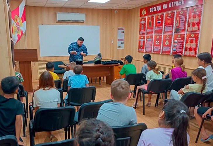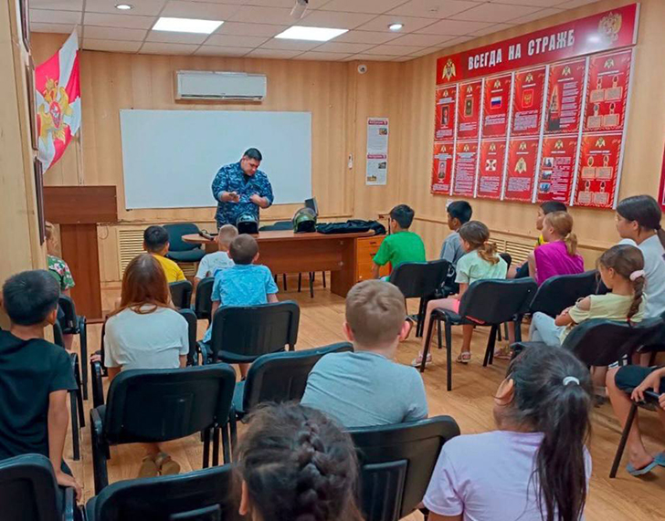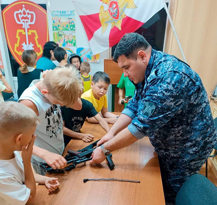 Сотрудники вневедомственной охраны Главного управления Росгвардии по Московской области организовали день открытых дверей для воспитанников детского оздоровительного лагеря города Байконур.