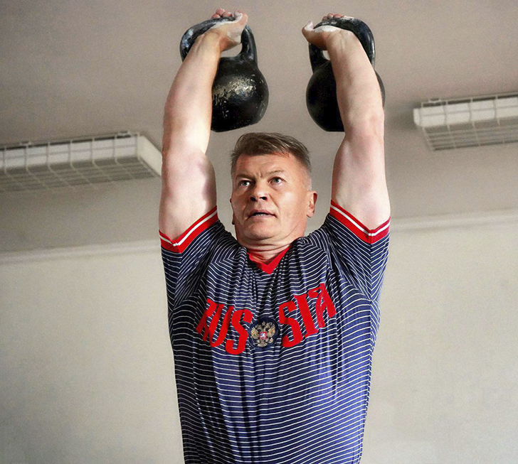 Спортсмены соревновались в толчке двух гирь по длинному циклу. Вес каждого снаряда составлял 24 килограмма.