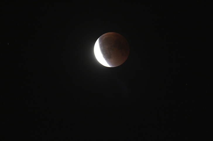 Хочется себе задать вопрос: «почему же Луна не исчезает полностью, а становится кроваво-красной»? Всё дело в земной атмосфере. Она действует как линза и призма: солнечные лучи рассеиваются, и только длинные волны красного и оранжевого спектра изгибаются, огибая Землю, и попадают вглубь её тени, мягко освещая Луну. Если бы у Земли не было атмосферы, мы бы видели лишь черный диск на месте Луны. Вид из Московского региона и даже из Клина получился вполне полноценным. Небесный спектакль шел ровно по расписанию.