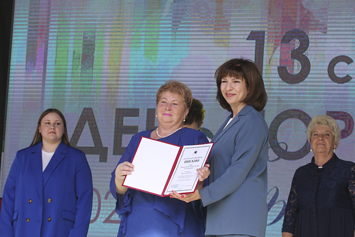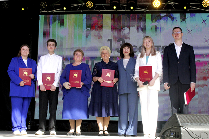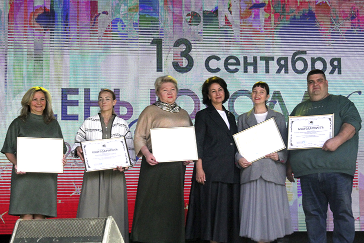 Праздник начался с торжественной церемонии на летней сцене Культурно-досугового центра. Здесь чествовали тех, кто своими руками создает лицо города — самых достойных и ответственных работников вручили заслуженные грамоты и благодарственные письма.