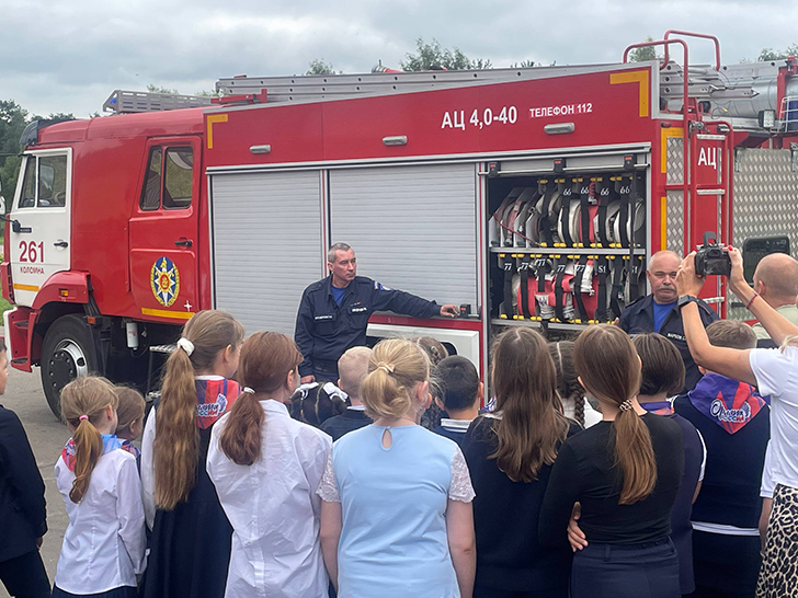 В четверг, 4 сентября, работники 261-й пожарно-спасательной части ГКУ МО «Мособлпожспас» провели урок безопасности для ребят из средней школы №30, расположенной в микрорайоне Щурово городского округа Коломна.