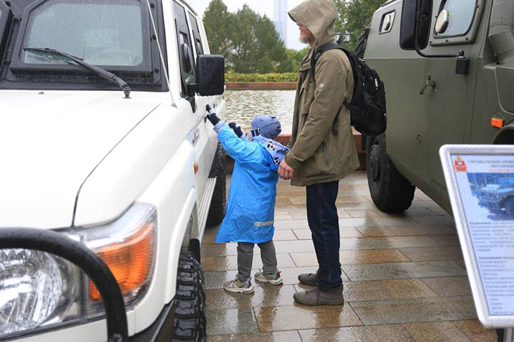 Бойцы СОБР «Булат» организовали для посетителей выставку специальных бронемашин «Тигр» и «Кобра», которые используются при выполнении служебно-боевых задач. Все желающие получили уникальную возможность не только увидеть технику спецподразделения вблизи, но и ознакомиться с внутренним устройством, посидеть за рулем и оценить особенности работы водителя специальных машин.