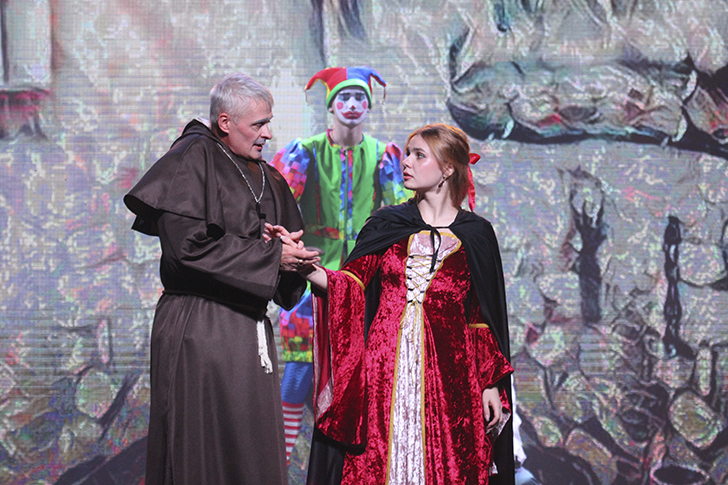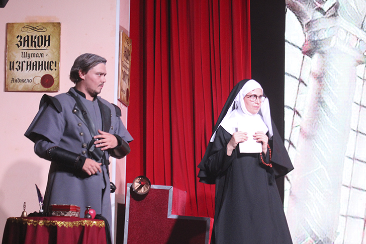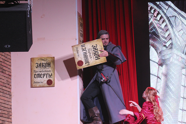 В зале Молодёжного центра «Стекольный» царила особая, трепетная атмосфера, словно само время замедлило свой бег. Здесь, на сцене, молодёжный театр «НУИНУ» представил свой вариант спектакля «Анджело» — смелую и изящную театральную фреску, сотканную из нитей пушкинской поэзии и шекспировской драмы «Мера за меру».