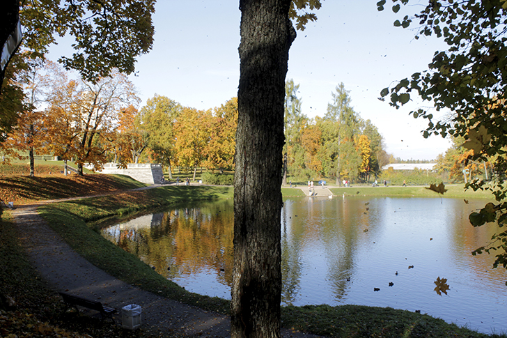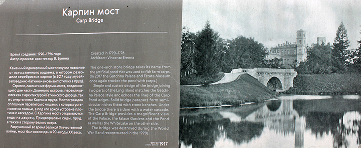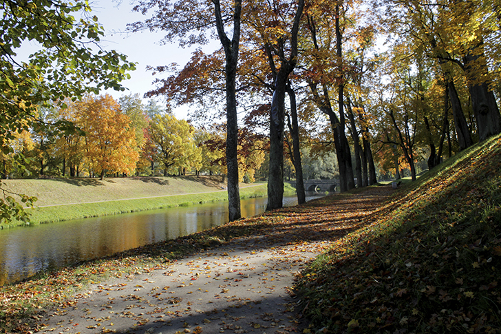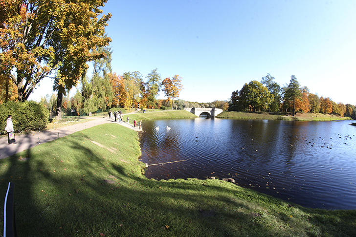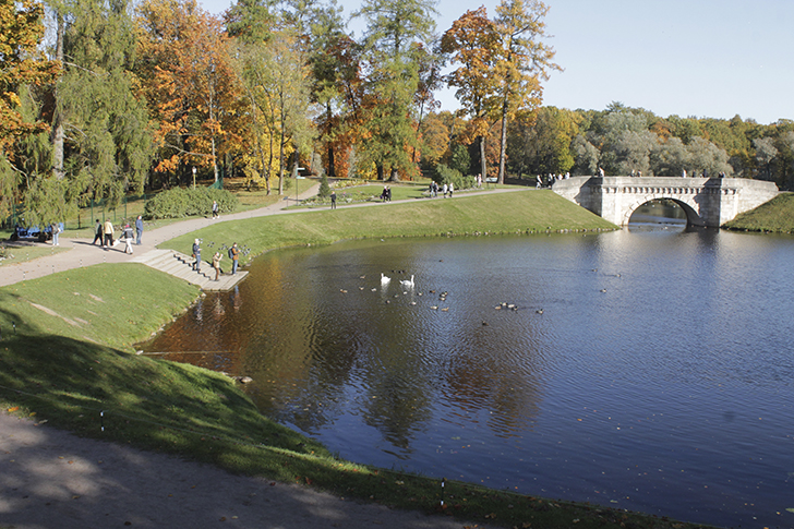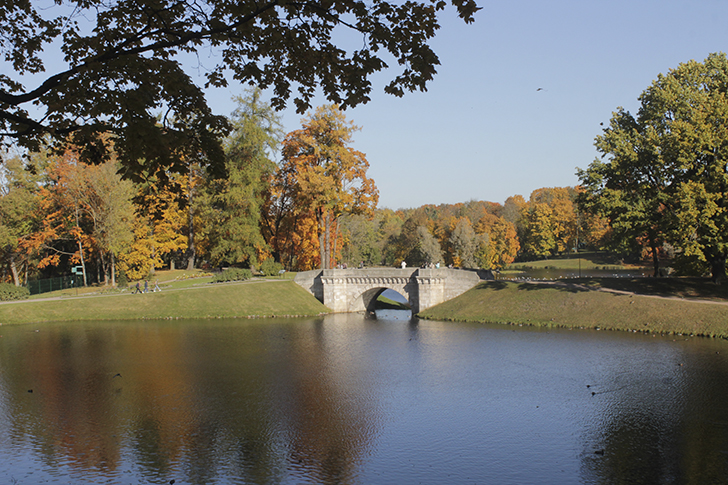 Пейзажный ансамбль парка, созданный в XVIII веке, манит к неспешным прогулкам. Дорога ведет через Карпин мост, под которым шумит искусственный каскад, к самым высоким воротам Гатчины — Адмиралтейским. Они, как исполинская рама, обрамляют уходящие вдаль перспективы.
