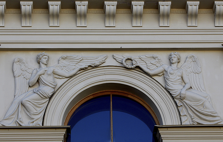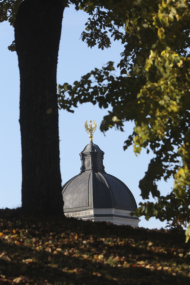 Великая Отечественная война оставила на дворце незаживающие раны. Он горел, был минирован, и до сих пор не все его залы восстановлены. Но снаружи он стоит — мощный, незыблемый, символ стойкости.