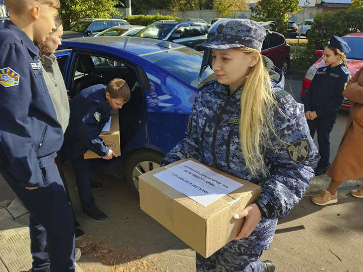 Подольских курсантов. Совместно с кадетами школы, сотрудники Росгвардии передали всю собранную гуманитарную помощь представителям волонтерских организаций для дальнейшей отправки адресатам.