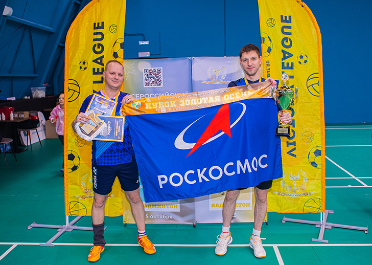 5 октября в спортивном комплексе «Space ВДНХ» прошел Всероссийский турнир по бадминтону — Кубок «Золотая осень». Это спортивное событие собрало 12 межотраслевых команд из Москвы и Московской области и подарило зрителям по-настоящему захватывающую игру на кортах. Госкорпорацию «Роскосмос» представляли две команды: первая команда – мужская пара в составе Владимира Попова (АО «ЦНИИмаш») и Ильи Чулкова (АО «Корпорация «МИТ»), вторая команда – смешанная пара в составе Алексея Кутоманова и Екатерины Спасенихиной (АО «ЦНИИмаш»).