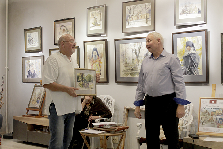 Именно здесь, где царит неповторимая атмосфера творчества и душевного тепла, открылась яркая, солнечная, с легким зимним отблеском и очень духовная выставка акварелей Михаила Нехайчика под названием «Сердцем хранимое».