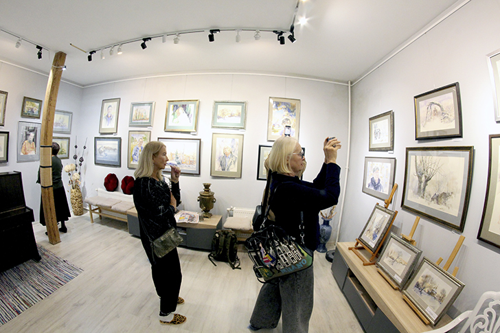 Увидеть такое огромное количество акварелей в одном месте — само по себе редкое явление. Это завораживало и останавливало внимание у каждого полотна.