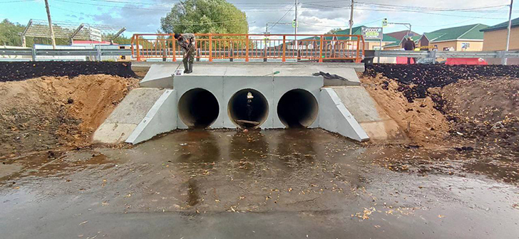 «В рамках капремонта мост 1953 года постройки на улице Московской в Дмитрове полностью демонтировали, а на его месте возвели новое сооружение, включающее в себя трехочковую водопропускную трубу. Мостовики обустроили асфальтобетонное покрытие, барьерные и перильные ограждения для безопасности участников движения», — рассказал министр транспорта и дорожной инфраструктуры Московской области Марат Сибатулин.