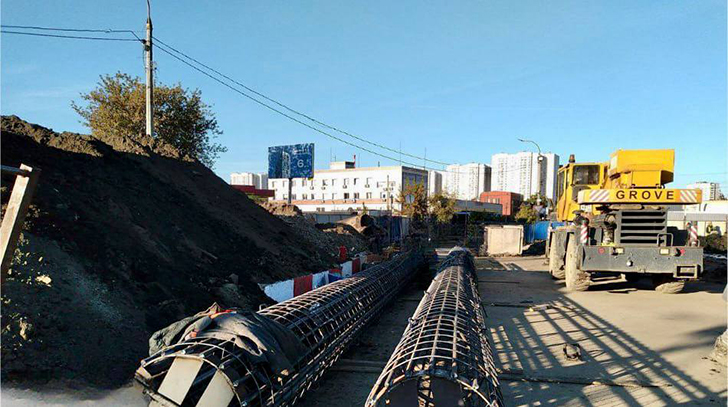 Сейчас строители устраивают сваи фундамента под промежуточные опоры, а на некоторых из них уже приступили к бетонированию. Также начались буровые и бетонные работы и вынос инженерных коммуникаций. Строители работают в две смены, включая ночное время, чтобы ускорить темпы строительства.