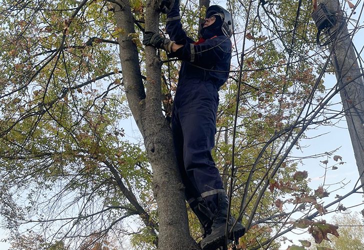 «Девушка рассказала, что выпустила погулять своего питомца, а через некоторое время обнаружила его на верхушке клена недалеко от дома. Кот жалобно мяукал, не реагируя на хозяйку, которая всяческими способами пыталась заставить животное слезть с дерева. Разволновавшись, она позвонила по номеру 112 и попросила помощи. На место прибыла дежурная смена спасателей. С помощью альпинистского снаряжения и страховочного приспособления один из специалистов забрался наверх, взял в руки животное и осторожно спустился с ним вниз, где передал кота в руки хозяйке», – рассказал Валерий Осипов.