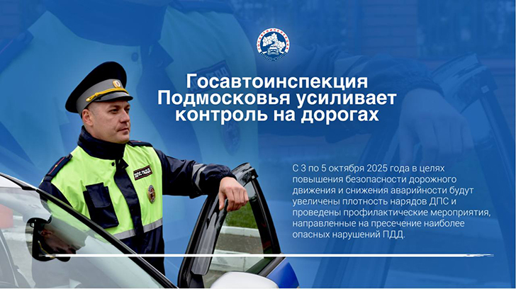 С 3 по 5 октября 2025 года Госавтоинспекция Московской области усилит контроль за соблюдением ПДД на всей территории региона.