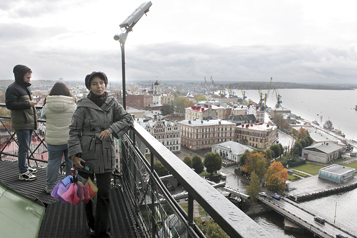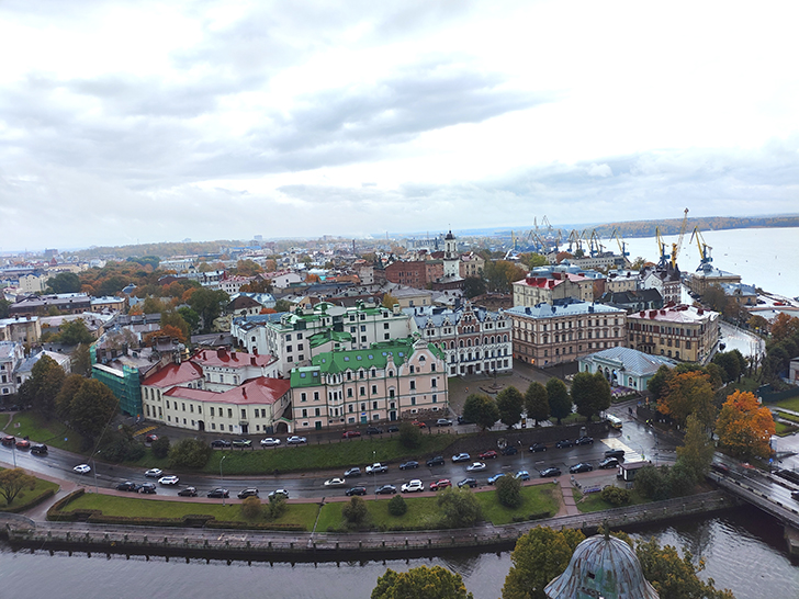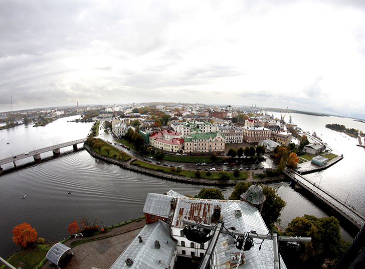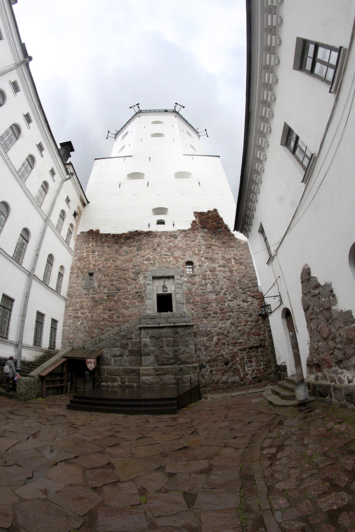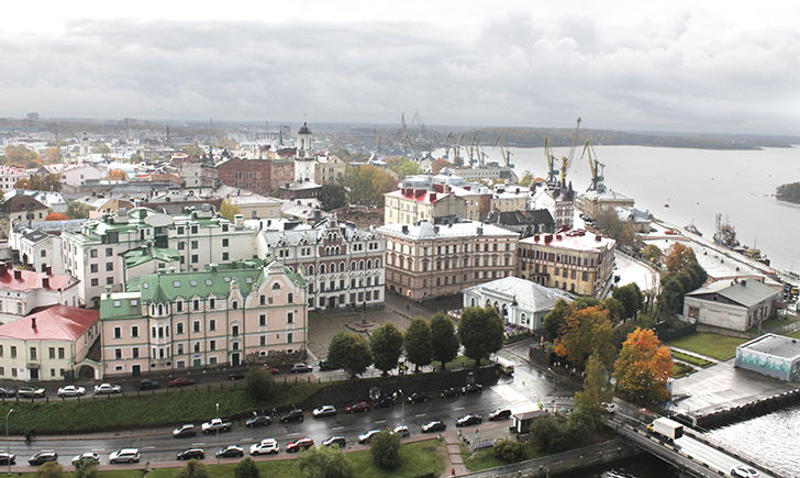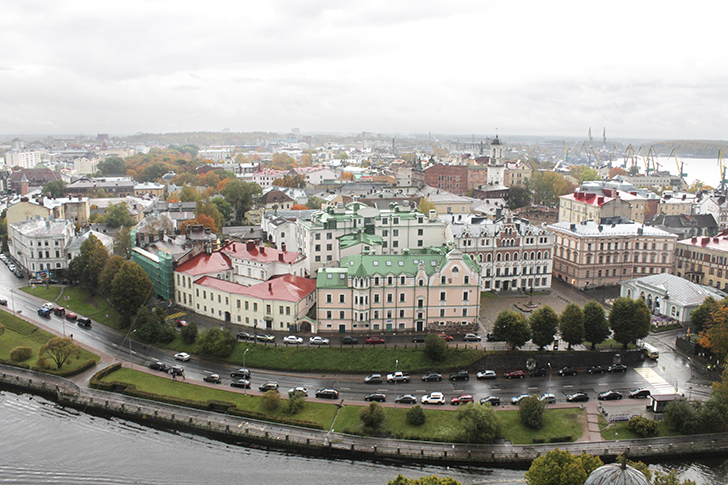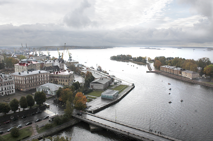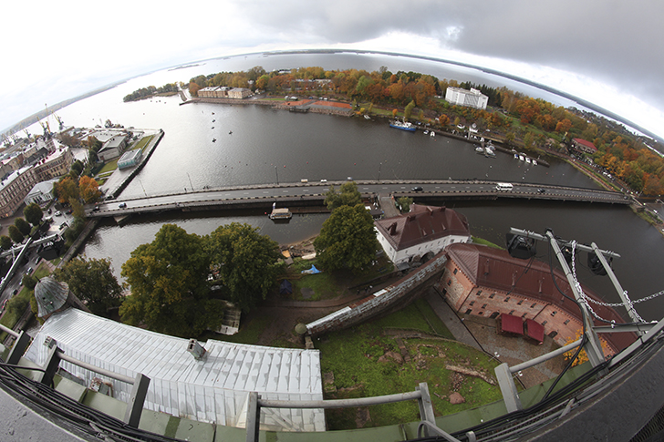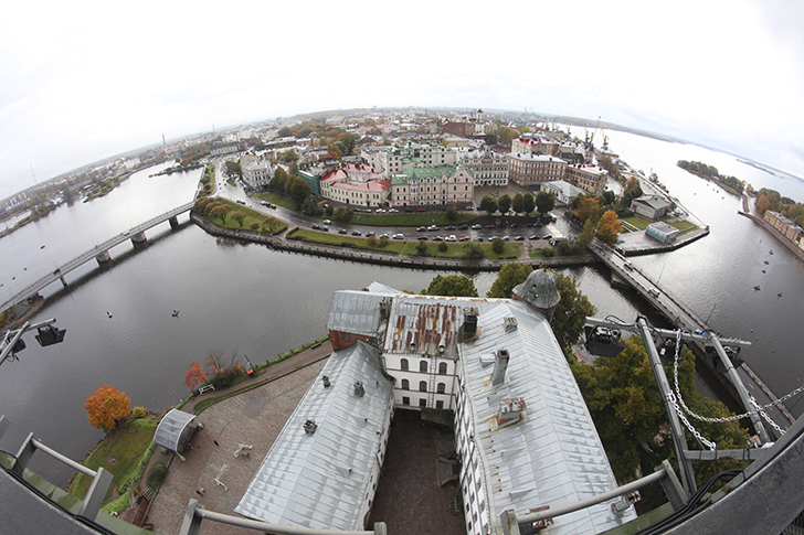 Виды с этой башни высотой в 13 этажей, открываются прекрасные виды не только на Выборг, но и на Финляндию через бинокль или длиннофокусный объектив.