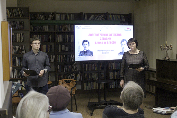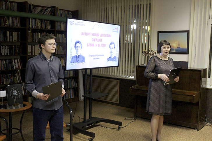 А на импровизированной сцене развернулось уникальное расследование, достойное увлекательного детектива. Следствие вели два ведущих, которые представили публике интересные сюжеты из жизни Александра Блока, его супруги Любови Менделеевой и поэта Андрея Белого.