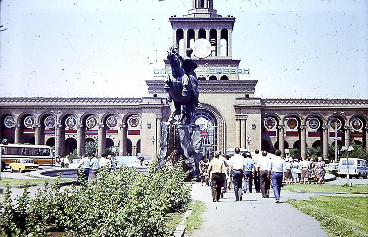 Столица Армянской ССР предстает городом солнца, розового туфа и строгой советской архитектуры, смягченной национальным колоритом. Мы видим проспекты, только начинающие обрастать знаменитыми каскадами, и памятники, которые и сегодня определяют лицо города.