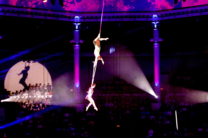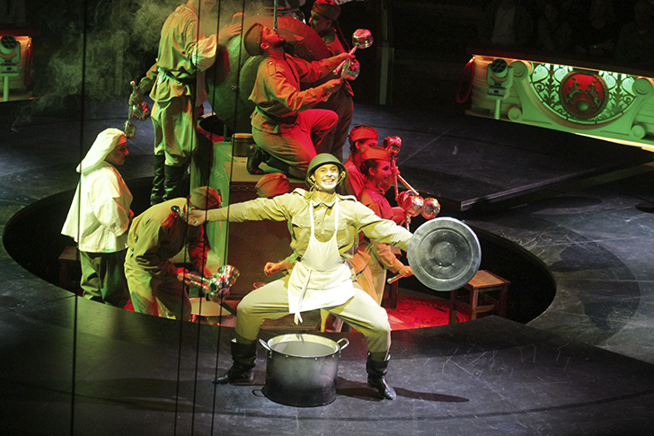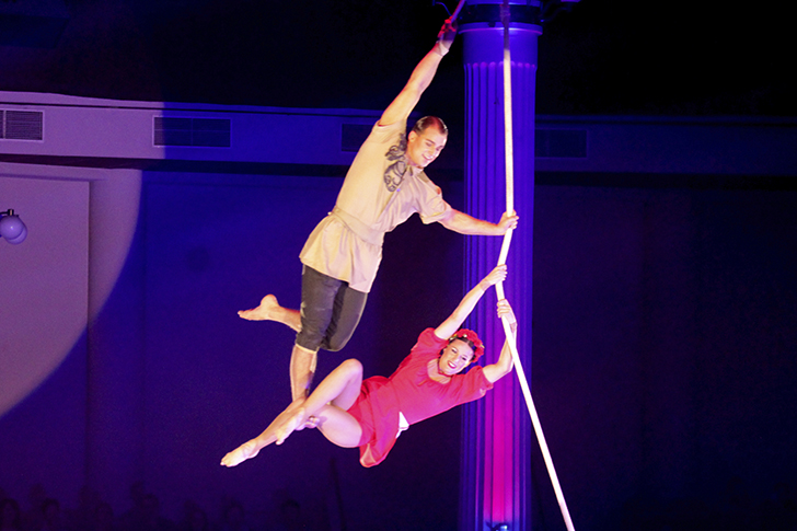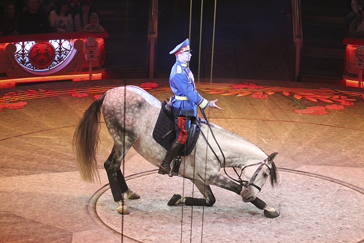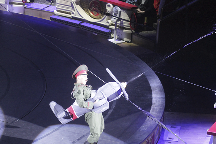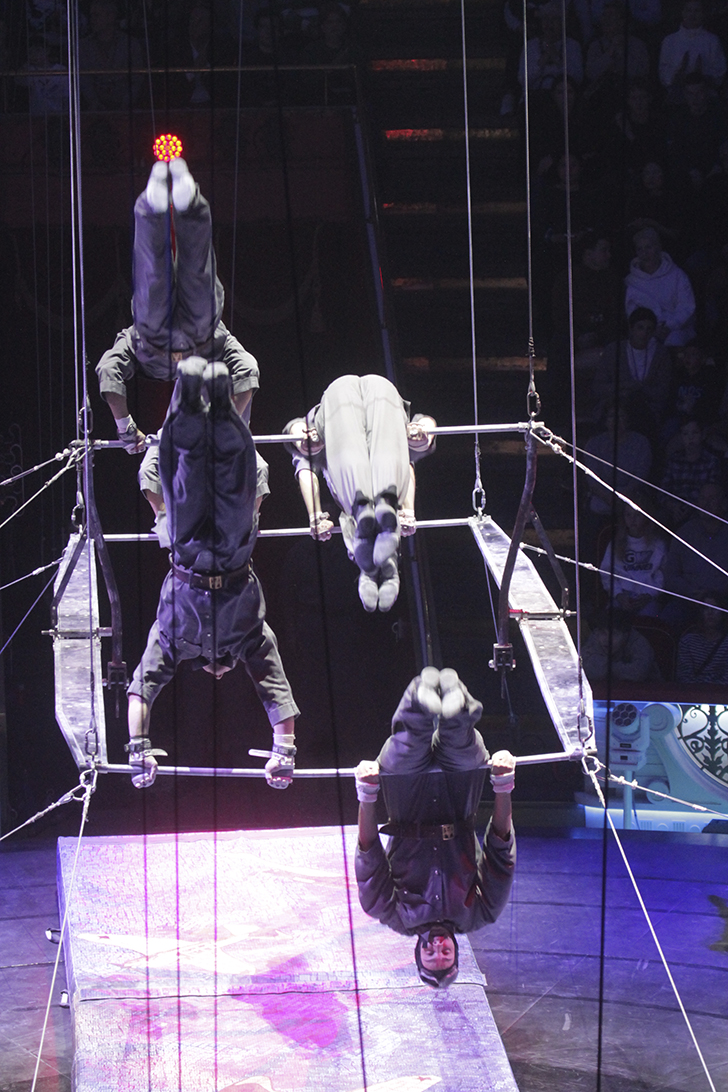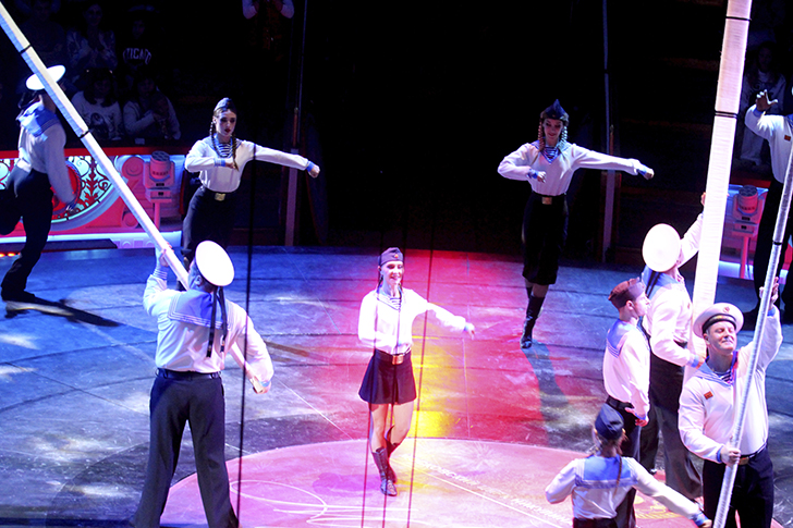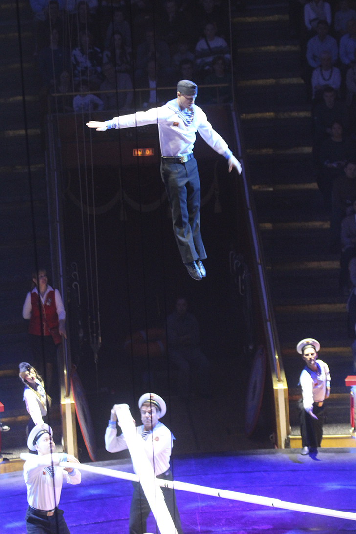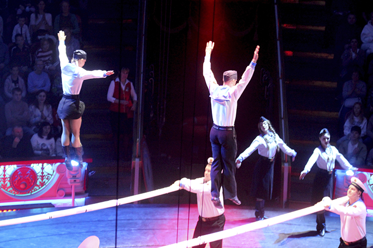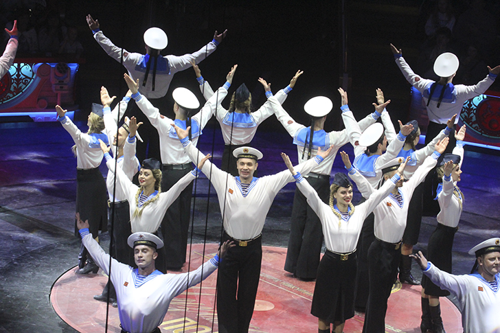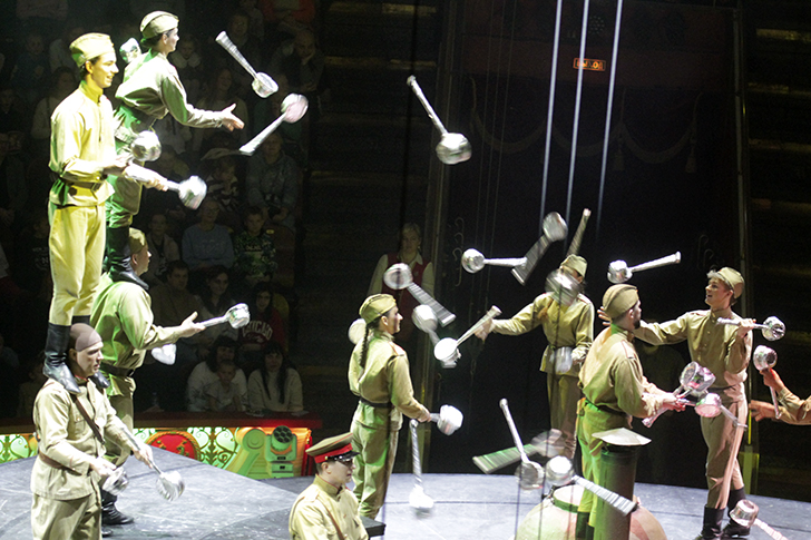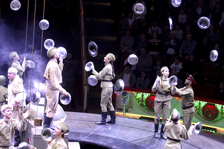 Доверие партнеров, работающих без страховки, и невероятные поддержки заставляют зал замирать, а потом долго не отпускать артистов криками «Браво!». «Военно-полевая кухня» — клоуны с кастрюлей, половником и макаронами вызывают искренний смех, а жонглеры, виртуозно управляющиеся с картошкой и металлическими тарелками, просто зажигают зал.
