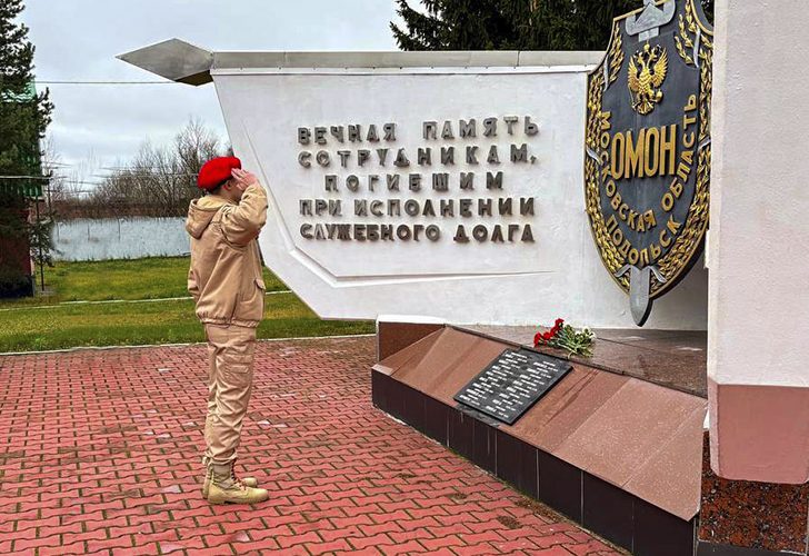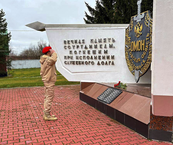 В память о погибших героях отряда бойцы и школьники возложили цветы к мемориалу сотрудникам, погибшим при исполнении служебных обязанностей.