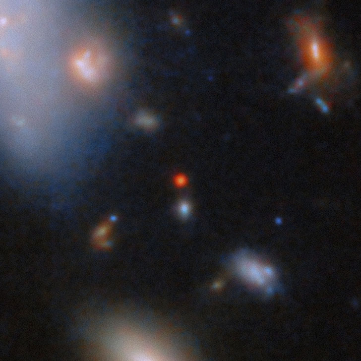 «Галактика относится к классу так называемых «маленьких красных точек» – очень далеких и компактных объектов, известное число которых растет благодаря глубоким обзорам «James Webb». На снимках она выглядит как крошечный круглый красный объект среди множества более крупных и ярких галактик скопления», – рассказывают участники наблюдений.