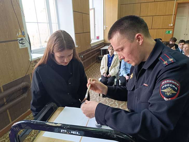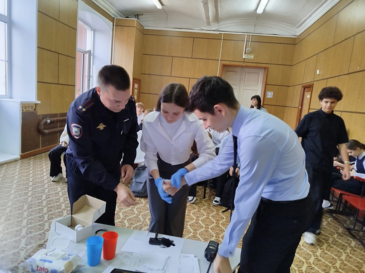 В заключение мероприятия сотрудники ОМВД продемонстрировали ребятам спецсредства полиции, которые вызвали у них неподдельный интерес и рассказали об условиях поступления в учебные заведения системы МВД, а Ольга Даллакян пожелала всем отличной учебы и интереса к юридической науке.