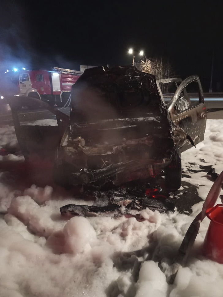 Начальник 289-й пожарной части Алексей Кабанов рассказал, что вечером в единую службу экстренных вызовов «Система-112» поступило сообщение о том, что произошло столкновение двух легковых автомобилей: Renault и Mercedes. В результате аварии Renault загорелся.