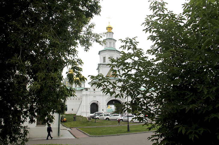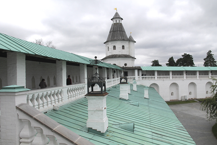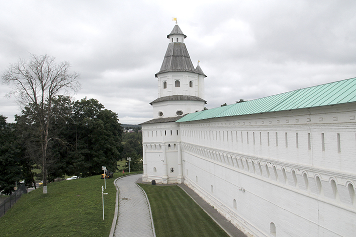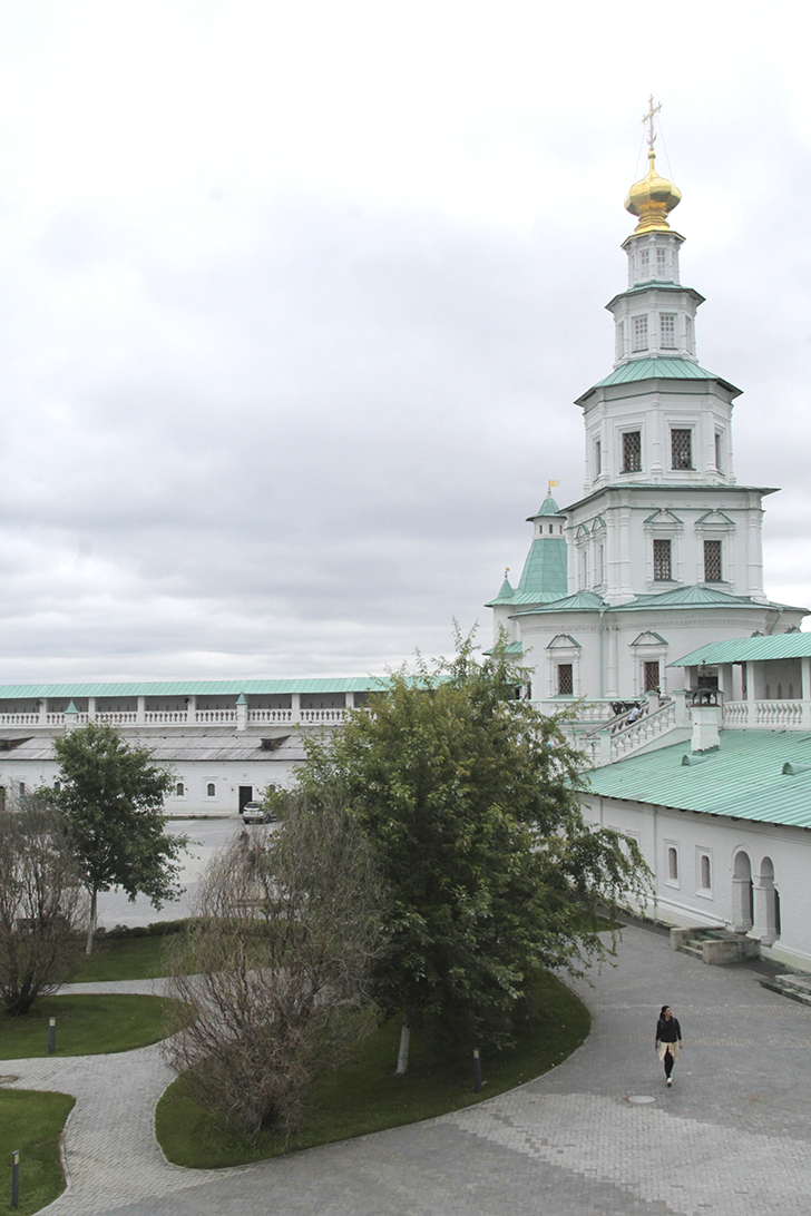 С высоты птичьего полета он похож на неприступную крепость, вознесшуюся на холме, в сердце которой парит в небесах златоглавый Воскресенский собор. Его шатер с шестьюдесятью окнами, словно корона, венчает всю обитель.