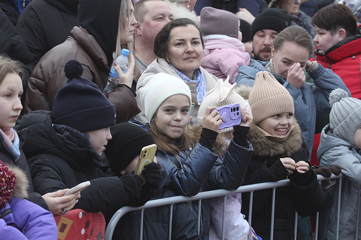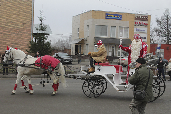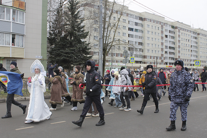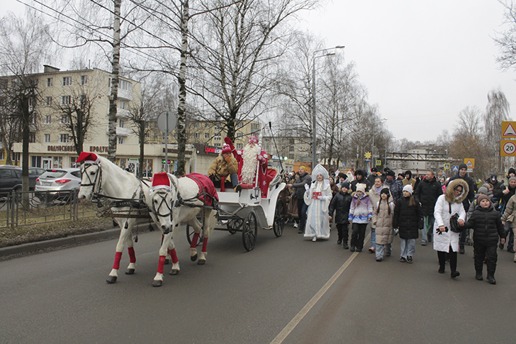 И вот он явился — властитель стужи и друг всех детей, прибывший без опозданий, будто точно рассчитав магию мгновения. Приветствовав участников ослепительной улыбкой, Дедушка Мороз занял место в легком сверкающем экипаже, запряженном парой белоснежных лошадей, и возглавил шествие. За ним потянулась вереница чудес — более двадцати клинских команд, каждая со своей историей.