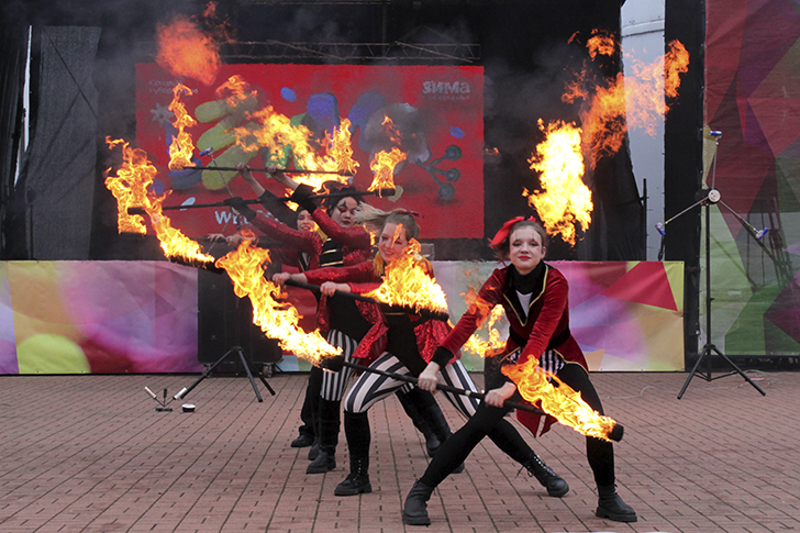 А когда, казалось, волшебство достигло пика, небо над Клином расцветило огненное флаер-шоу московской группы. Пламя в руках артистов танцевало в такт музыке, создавая живую, дышащую сказку.