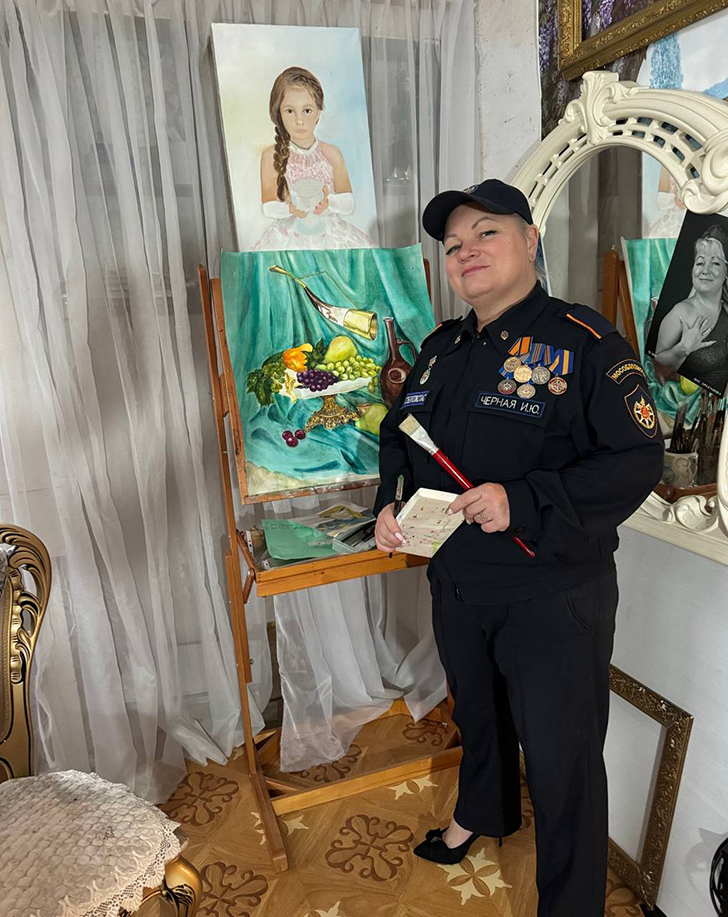 Художник по образованию, начальник отдела СМИ ГКУ МО «Мособлпожспас» Мария Докучаева участвует в выставках и пишет картины на заказ. В ее творческой копилке – работы в разных техниках, но в фаворите — объёмные мазки и игра с контрастами. В 2023 году Мария стала победителем в конкурсе художественных работ XIX чемпионата МЧС России по многоборью спасателей: Мария написала маслом на холсте портрет замначальника теруправления №5 Владимира Пискуна.