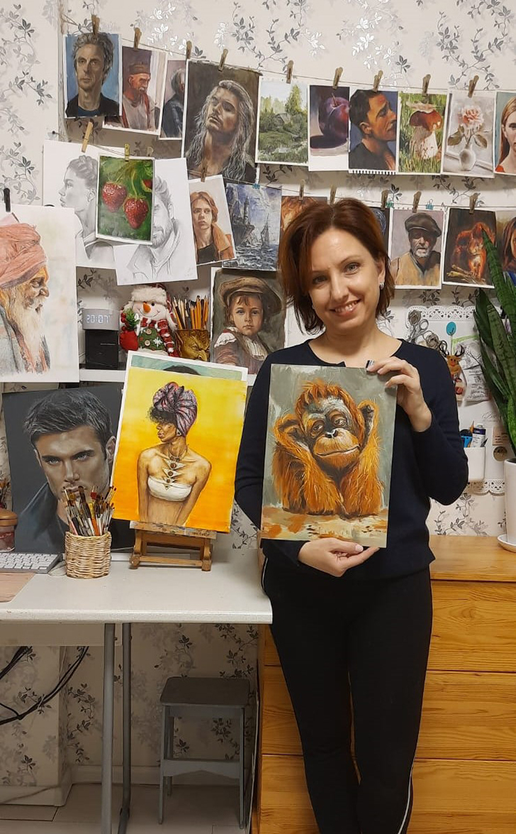 Позже записалась в художественную онлайн-школу по рисованию портретов в разных техниках: карандаш, пастель, масло. Каждый материал по-своему прекрасен, но моя главная любовь – это, безусловно, масляная живопись. Рисование мне помогает отвлечься от будней, для меня это как медитация. Так я отдыхаю. Порой настолько увлекаешься, что и не замечаешь, как быстро пролетело время. Желаю всем найти своё любимое занятие, которое делает вас счастливыми!» – рассказала Елена Ханякина.
