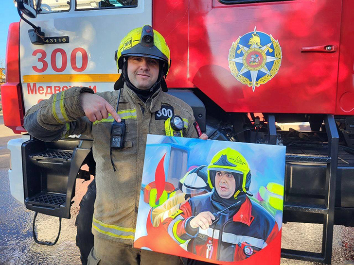 Художник по образованию, начальник отдела СМИ ГКУ МО «Мособлпожспас» Мария Докучаева участвует в выставках и пишет картины на заказ. В ее творческой копилке – работы в разных техниках, но в фаворите — объёмные мазки и игра с контрастами. В 2023 году Мария стала победителем в конкурсе художественных работ XIX чемпионата МЧС России по многоборью спасателей: Мария написала маслом на холсте портрет замначальника теруправления №5 Владимира Пискуна.