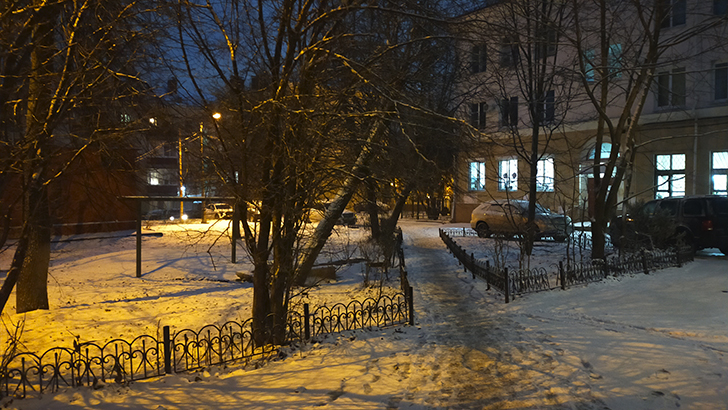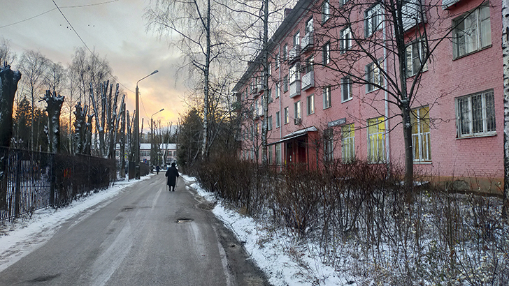 А выглянешь в окно, там дворник Наташа с трудом разгребает лопатой тротуар, а счастливая мама Саша усадив свою дочку в санки повезла её в садик. А вот детвора гурьбой бегут в школу, перекидываясь снежками.