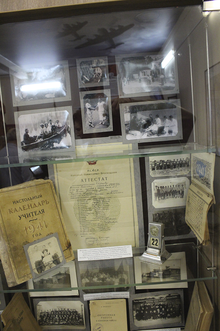 А вот зал с рассказом о клинских космических героях развернулся в другом прилегающем помещении. Именно там же выставлены экспонаты с выставки об истории образования, от Императорской России, до последних лет Советского Союза и многое другое.