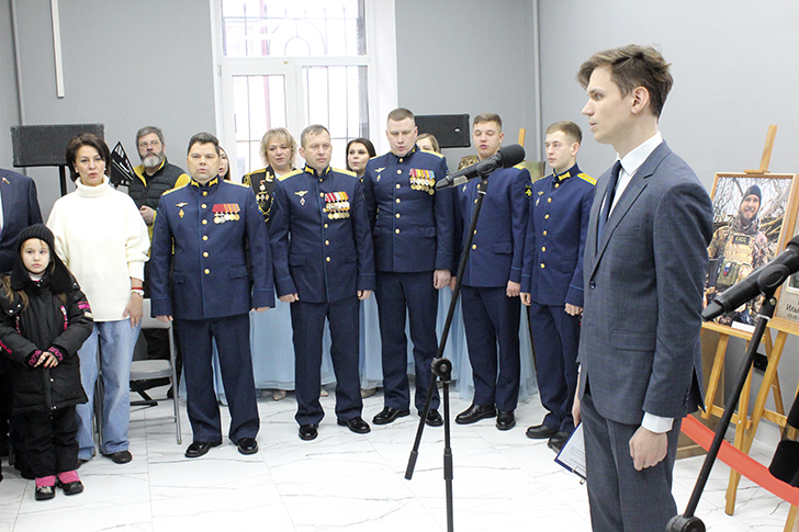 В торжественной части мероприятия выступили глава городского округа Клин Инна Аркадьевна Федотова, депутат Московской областной думы Сергей Вячеславович Сретенский, председатель Союза Десантников г. о. Клин Денис Филиппов, протоиерей Игорь Ковалёв, заместитель командира исследовательского, вертолётного полка участник боевых действий подполковник Алексей Владимирович Волков.