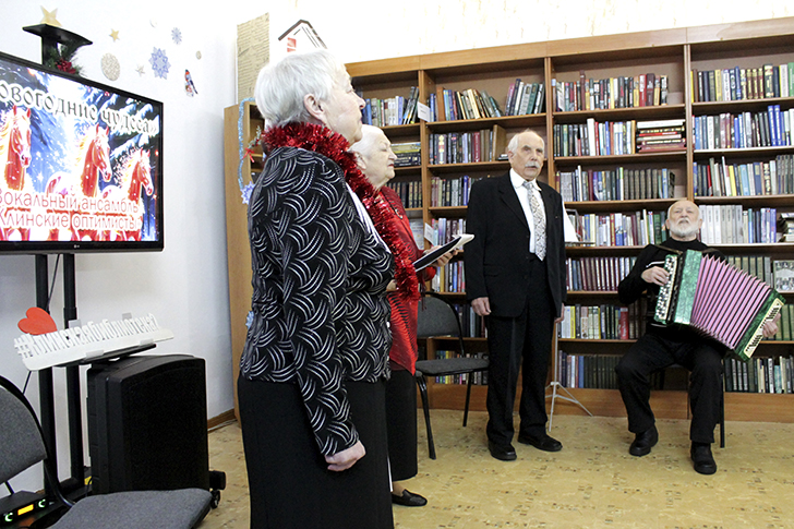 Их песни, тёплые и искренние, словно первая пушистая снежинка, запустили хоровод праздничных эмоций, наполнив зал улыбками и всеобщим ощущением радости. Казалось, сами стены библиотеки подпевали знакомым мелодиям о зиме, надежде и счастье.