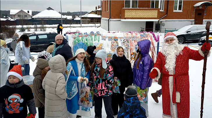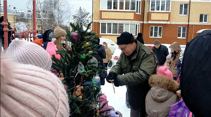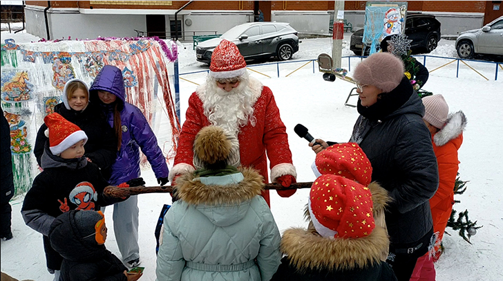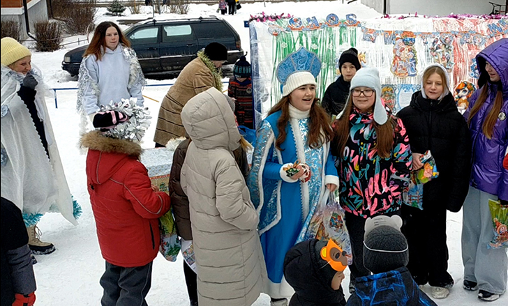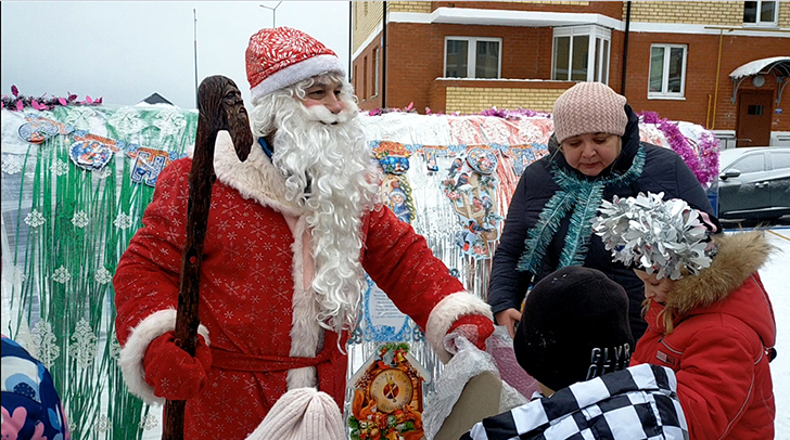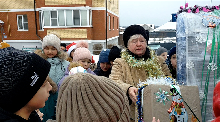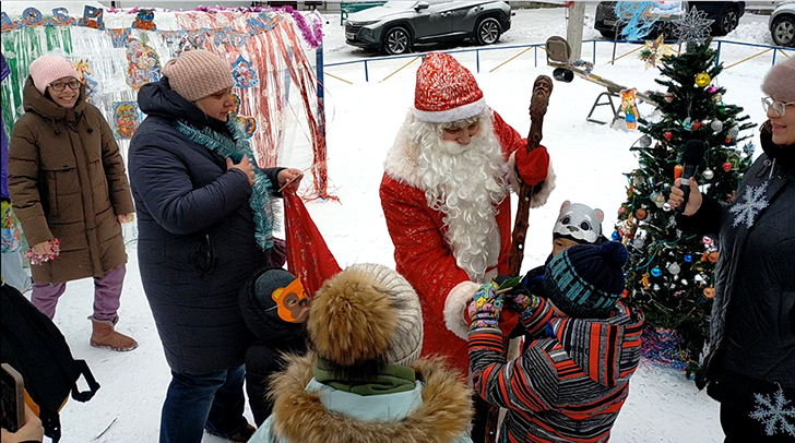 Каждый малыш, прочитавший стишок или спевший песенку, получал из рук дедушки и сладкий гостинец, и яркую игрушку. Не остались без внимания и взрослые — самые активные из них тоже заслужили свои праздничные сувениры.
