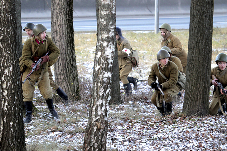 У памятника «Пушка-гаубица» на пересечении Ленинградского шоссе и Староямской улицы прошла реконструкция декабрьского боя 1941 года. По приказу Иосифа Виссарионовича Сталина под Москву были переброшены уральские дивизии и снайперские подразделения, сыгравшие ключевую роль в контрнаступлении, включая действия советских войск под городом Клин. Город Клин, захваченный ранее немцами (22 дня оккупации), был важным стратегическим пунктом, через который враг планировал развивать наступление на северные районы Москвы. Однако упорное сопротивление советских солдат и умелое руководство полководцев привели к разгрому немецкой группировки в этом районе.