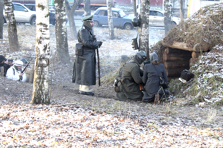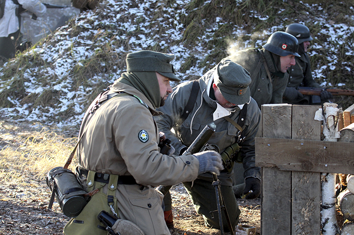 Честно говоря, чтобы в наше время точно реконструировать обмундирование германского солдата, требуется много времени и значительные затраты. Огромная благодарность в организации реконструкции боя нашим клинским поисковикам, Павлу Пустырёву и всем участникам, принявшим участие в этом «театре военных действий».