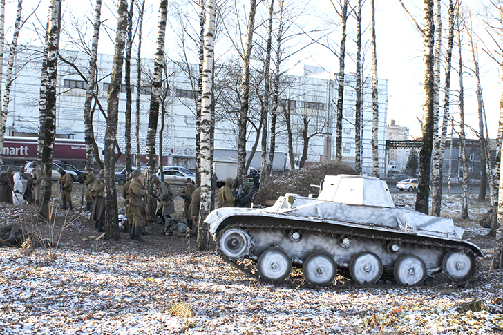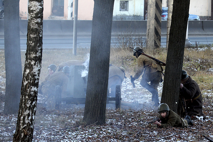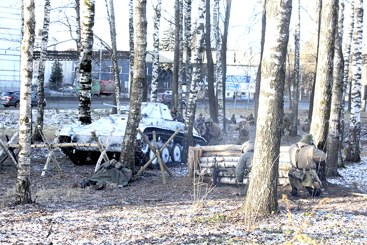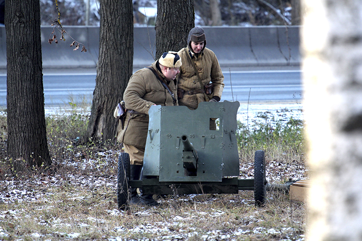 У памятника «Пушка-гаубица» на пересечении Ленинградского шоссе и Староямской улицы прошла реконструкция декабрьского боя 1941 года. По приказу Иосифа Виссарионовича Сталина под Москву были переброшены уральские дивизии и снайперские подразделения, сыгравшие ключевую роль в контрнаступлении, включая действия советских войск под городом Клин. Город Клин, захваченный ранее немцами (22 дня оккупации), был важным стратегическим пунктом, через который враг планировал развивать наступление на северные районы Москвы. Однако упорное сопротивление советских солдат и умелое руководство полководцев привели к разгрому немецкой группировки в этом районе.